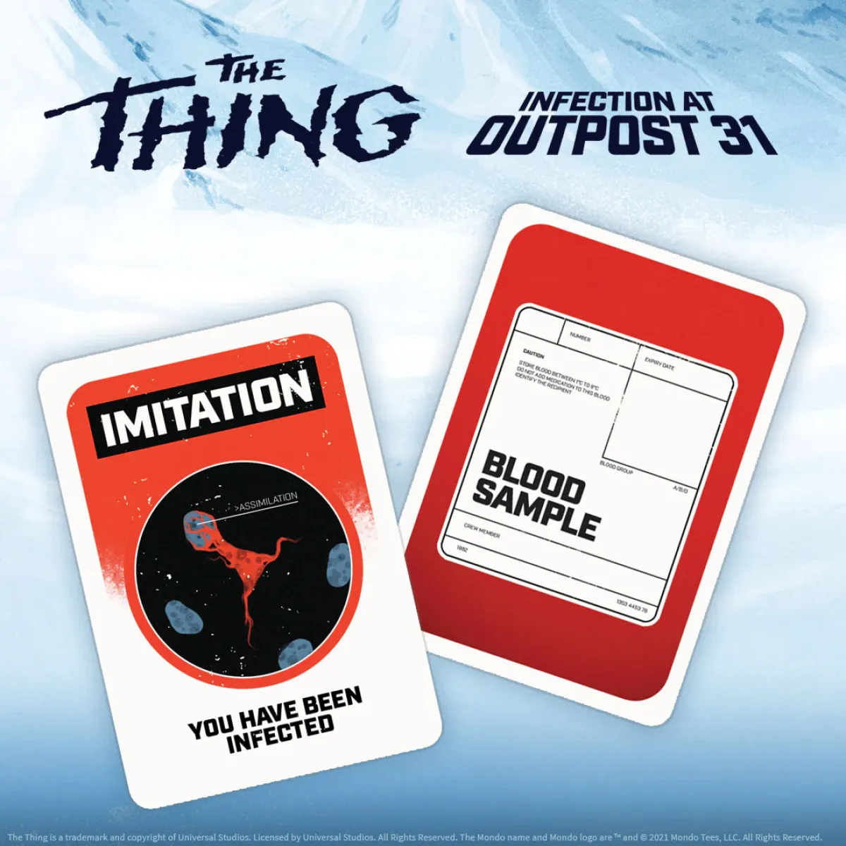 Infection at Outpost 31 is a board game based on the cult classic remake John Carpenter’s “The Thing” centered around learning which of your friends is human and which is a terrible assimilation creature from space.